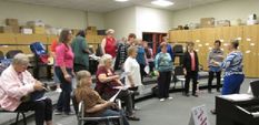 To vist our rehearsals....We rehearse from 6:30 - 9:00 pm every Monday Evening, except on holidays and between Christmas and New Years. Through these weekly rehearsals and individual practice, the chorus members work to improve vocal skills and techniques. All the while, we are enjoying the comradery of these ladies.
